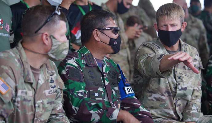 Bertempat di ketinggian titik tinjau daerah latihan Puslatpur, Komandan Latma Garuda-Shield-15/2021 dan Commander of 25th Infantry Division menyaksikan langsung manuver gabungan antara pasukan TNI AD dan US Army yang secara taktis mendekati sasaran dan menghancurkannya dalam babak-babak serangan.
