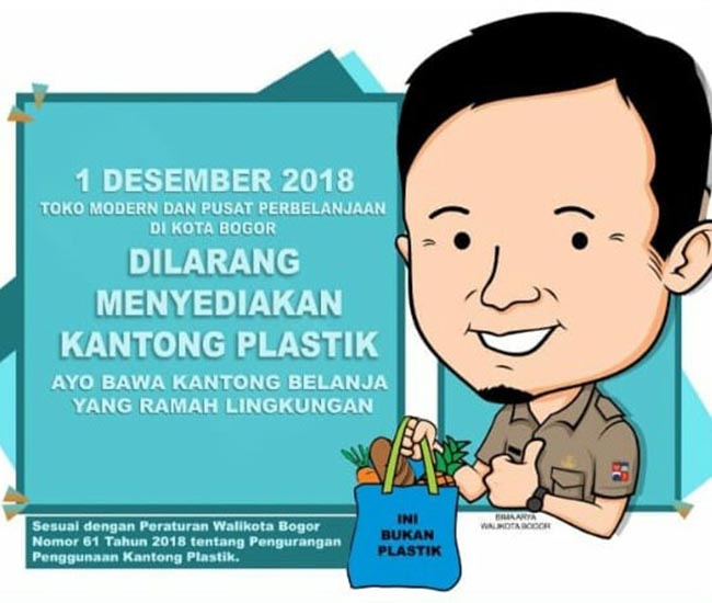 Mulai 1 Desember 2018 Pemerintah Kota Bogor akan menerapkan kebijakan pelarangan penyediaan kantong plastik di retail modern dan pusat perbelanjaan. Artinya, setiap konsumen yang berbelanja diwajibkan untuk membawa kantong belanjaan ramah lingkungan pengganti plastik.