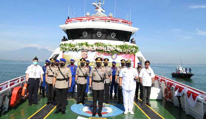 INILAHONLINE.COM, CIREBON — Dalam rangka memperingati HUT ke-75 Bhayangkara, Kapolda Jabar Irjen Pol. Ahmad Dofiri melaksanakan upacara tabur bunga di laut Cirebon, Selasa (29/6/2021). Kapolda dan pejabat utama Polda Jabar menaiki KPLP Penjagaan jenis KN JEMBIO-P.215 ke tengah laut.