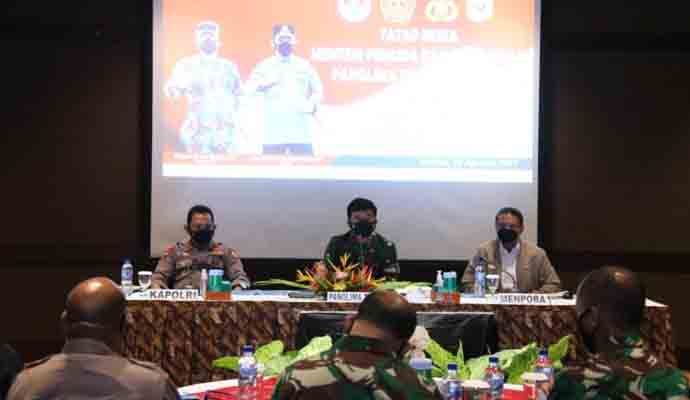 INILAHONLINE.COM, JAKARTA — Panglima TNI Marsekal Hadi Tjahjanto, Kapolri Jenderal Listyo Sigit Prabowo dan Menpora Zainudin Amali, kembali melakukan pengarahan di Provinsi Papua terkait dengan persiapan jelang PON ke-XX. Kali ini, mereka memberikan pengarahan kepada Forkopimda Kabupaten Mimika.