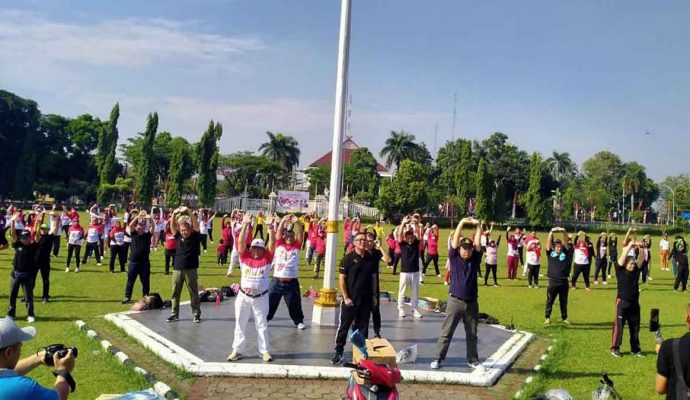 Goyang Merdeka yang dimulai sejak pukul 06.30 WIB berlangsung penuh semangat.