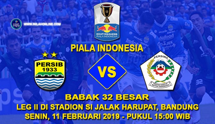 Menindaklanjuti surat PSSI nomor 394/AGB/49/II-2019, bersama ini disampaikan Penentapan Jadwal Pertandingan Piala Indonesia Babak 32 Besar Leg 2 antara PERSIB Bandung dengan Persiwa Wamena adalah sebagai berikut: