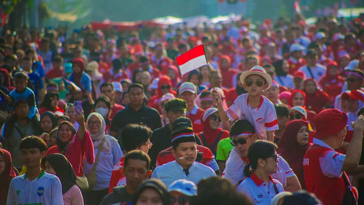 Sejak pagi, masyarakat telah menunggu di sepanjang rute sambil mengenakan atribut merah putih, menambah semarak suasana menjelang Hari Kemerdekaan.