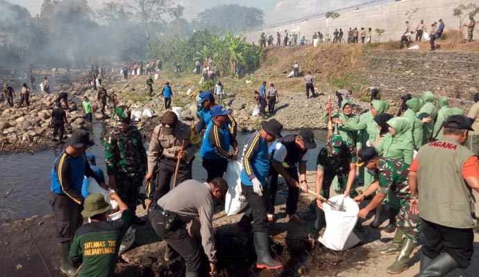 Seribuan personel gabungan TNI, Polri, Pemda dan ormas serta masyarakat, tumplek kerigan (kerja bakti) njebur kali. Seribuan personel gabungan tersebut dari Kodim 0701/Banyumas, Batalyon 405/Surya Kusuma, Polres Banyumas, Pemda Banyumas, Ormas dan masyarakat umum, bergotong-royong melaksanakan karya bhakti spektakuler pembersihan sungai Banjaran. Sabtu (07/09/2019).