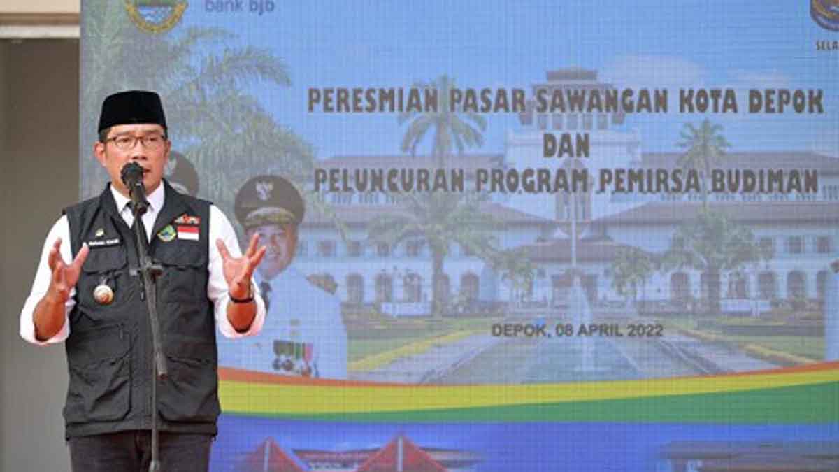 INILAHONLINE.COM, DEPOK — Gubernur Jawa Barat Ridwan Kamil meluncurkan program pemesanan minyak goreng bersubsidi melalui Aplikasi Sapawarga, di Kota Depok, Jumat (8/4/2022).
