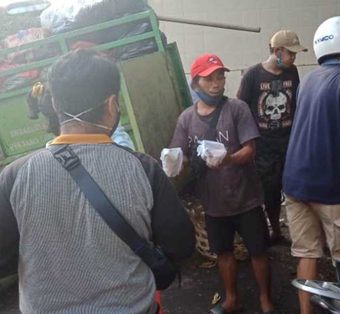 Sebelum membagikan nasi para relawan berkumpul di toko retail modern di Jalan Dipenogoro Sanglah Denpasar untuk menata dengan rapiu nasi bungkus dan air mineral agar lebih mudah saat dibagikan. Dengan tetap menerapkan protokol kesehatan ditengah pandemi covid-19, saat akan berangkat relawan yang membagikan nasi tetap menggunakan masker kain/bedah serta tak lupa membawa hand sanitizer untuk menjaga kebersihan.