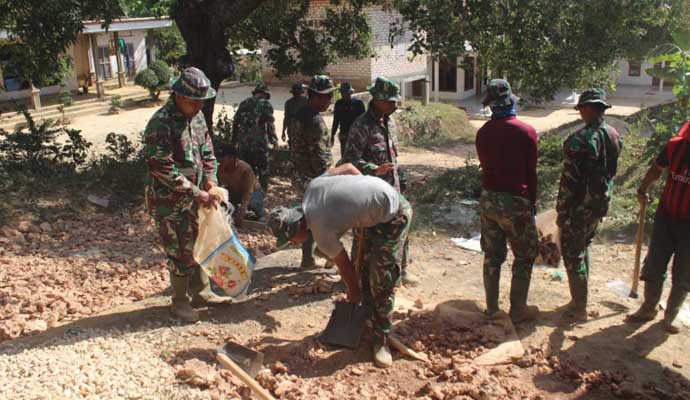 Diungkapkan Dansatgas, setelah sebelumnya merenovasi beberapa rumah warga, kini, Satgas mulai memperbaiki salah satu jalan.