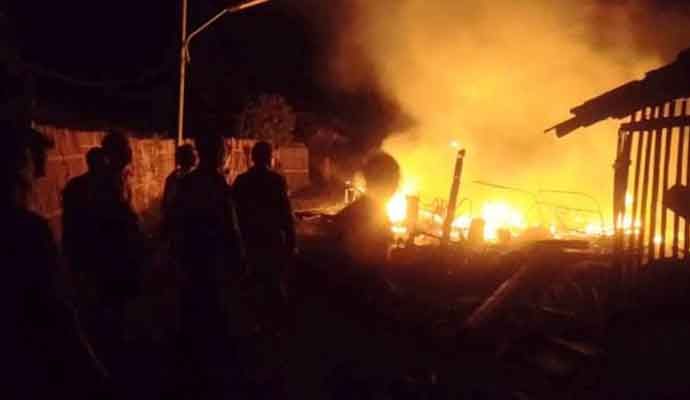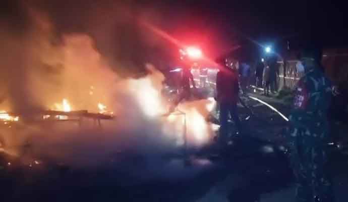 Sumber kebakaran diduga berasal dari api pembakaran sampah yang tertiup angin dan menyambar dinding bilik. (Aan)