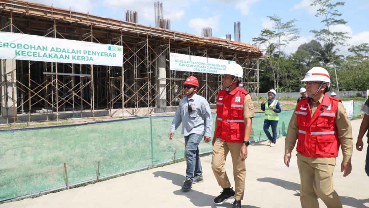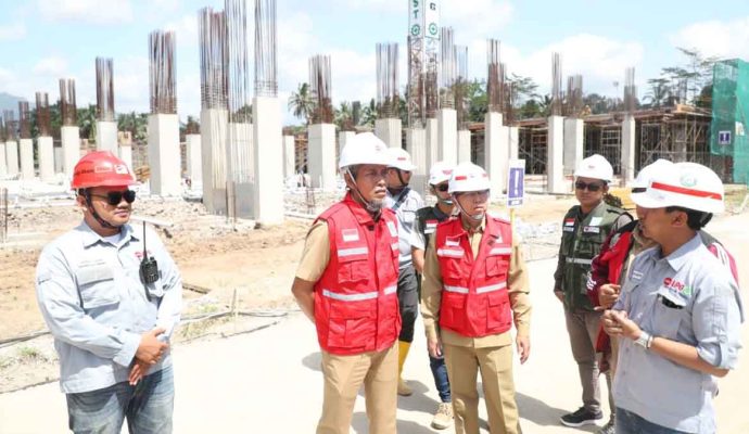 INILAHONLINE.COM, MAGELANG — Sekretaris Daerah Provinsi Jawa Tengah Sumarno mengecek progress pembangunan Masjid Agung Jawa Tengah (MAJT) Magelang, di Desa Sawitan Kecamatan Mungkid, Senin (15/5/2023).