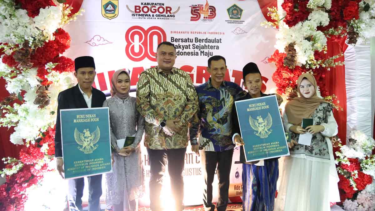 INILAHONLINE.COM, CIJERUK — Dalam rangka menyemarakkan Hari Ulang Tahun ke-80 Kemerdekaan Republik Indonesia, Pemerintah Kabupaten Bogor menyelenggarakan program Nikah Gratis bagi masyarakat di berbagai wilayah. Program ini digelar sepanjang bulan Agustus 2025, mulai tanggal 5 hingga 31 Agustus 2025.