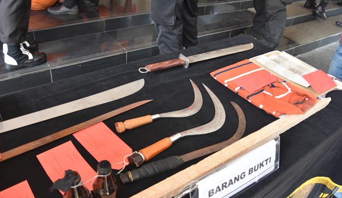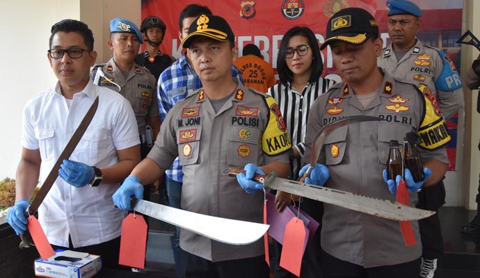 “Pelaku menyerang korban menggunakan sajam, menembak menggunakan senjata air softgun dan menyiram bensin,” kata Joni.