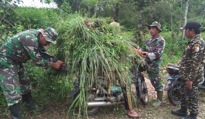 Meski sudah berjarak jauh, namun tak menyurutkan niat kedua anggota Satgas TMMD itu untuk mengejar Muhaimir. “Ketika saya hadang, terus saya ingatkan dan saya betulkan tali rumputnya,” ujarnya.