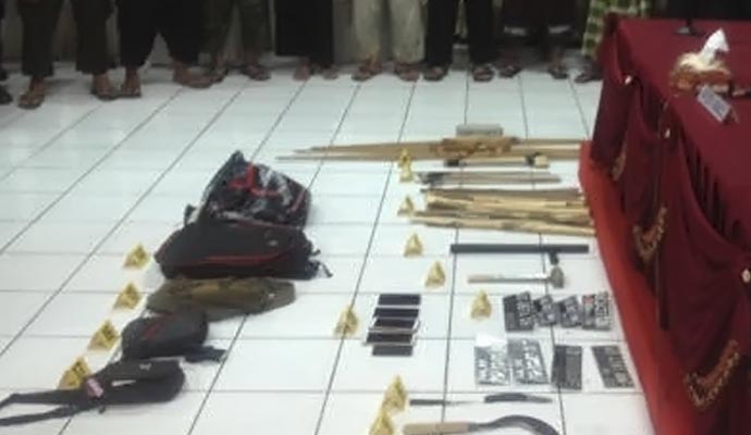 Menurutnya, dalam kejadian ini selain menangkap para pelaku, polisi juga menyita sejumlah barang bukti. Tidak main-main, ada anak panah 8 buah, tongkat T 1 buah, soft gun 1 buah, tongkat kayu 13 buah, palu 1 buah, sabit 1 buah, belati 2 buah, parang 3 buah, dan samurai 1 buah. Ada juga batako 1 buah, tembakan panah 1 buah, Hp android 4 buah dan Hp kecil 1 buah.