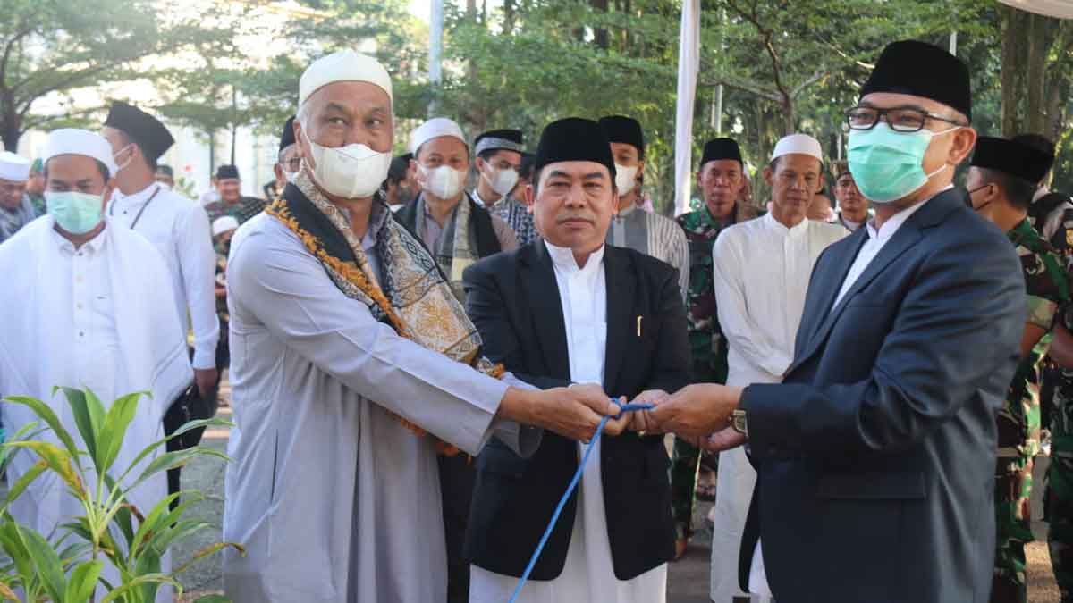 INILAHONLINE.COM, CIBINONG — Plt. Bupati Bogor, Iwan Setiawan menyerahkan hewan qurban berupa sapi secara simbolis kepada Dewan Kemakmuran Masjid (DKM) Baitul Faizin usai pelaksanaan Shalat Idul Adha berjamaah, Ahad (10/7). Pada kesempatan tersebut, Iwan menghimbau masyarakat tidak usah takut untuk mengkonsumsi daging kurban karena Penyakit Mulut dan Kaki (PMK) tidak menular kepada manusia.