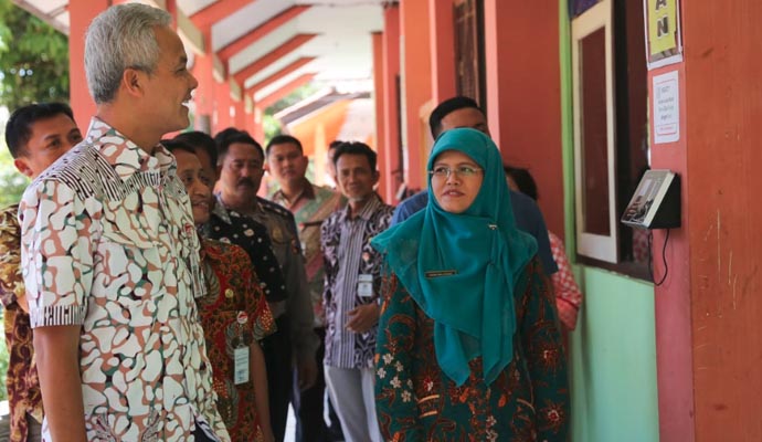 Gubernur Jawa Tengah, Ganjar Pranowo menggelar inspeksi mendadak (sidak) di SMAN 1 Singorojo Kabupaten Kendal, Jumat (11/10). Kedatangan Ganjar yang tidak disangka itu membuat sejumlah guru kebingungan.