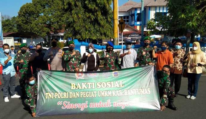 Sinergi TNI, Polri dan pegiat UMKM tersebut, digelar Korem 071/Wijayakusuma, Kodim 0701/Banyumas, dan Polresta Banyumas dengan menggandeng para pegiat UMKM (Usaha Mikro, Kecil dan Menengah) di wilayah Banyumas bertajuk Bakti Sosial Peduli Covid-19 bersama komponen masyarakat dengan melibatkan Babinsa dan Bhabinkamtibmas dengan sasaran masyarakat yang membutuhkan bantuan sosial terdampak Covid-19.