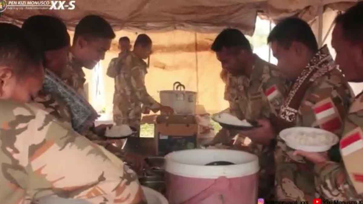 INILAHONLINE.COM, KONGO — Prajurit TNI yang tergabung dalam Satgas Kizi Kontingen Garuda (Konga) XX-S Monusco yang sedang bertugas di daerah konflik Democratic Republic Congo, Afrika, merayakan Idul Fitri dengan penuh suka cita, mengapa demikian ? Karena untuk tahun ini para Pasukan Garuda tersebut merayakan hari raya Idul Fitri dengan suasana berbeda, jauh dari keluarga dan kampung halaman. Namun tidak perlu khawatir, para chef yang biasa menyediakan makanan untuk para Prajurit Garuda bisa mengobati rasa rindu makan ketupat sayur, opor ayam, sate ayam, dan masih banyak lagi hidangan Indonesia lainnya.