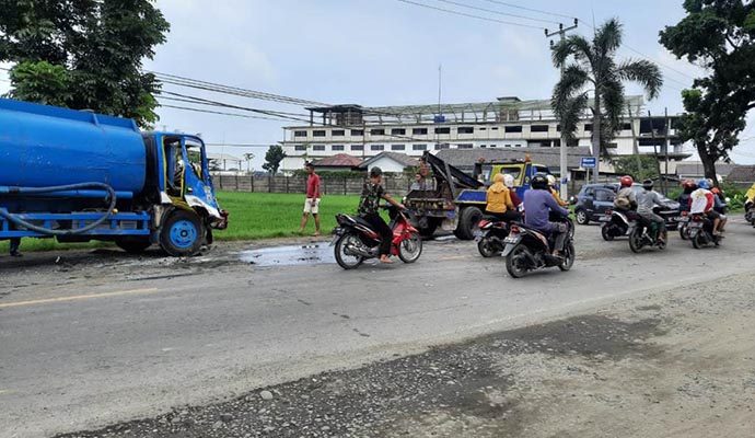 Kendaraan mobil Elf tersebut melaju dari arah berlawanan, kemudian mikrobus elf oleng ke kanan dan menabrak truk tangki bernopol E 9052 HC yang dikemudikan Iswandi (41), warga Blok Sitalang, Desa Gempol, Kecamatan Gempol, Kabupaten Cirebon yang datang dari arah Ciwaringin menuju Palimanan yang persis di belakang mobil Ayla, hingga mengakibatkan mobil rusak parah.
