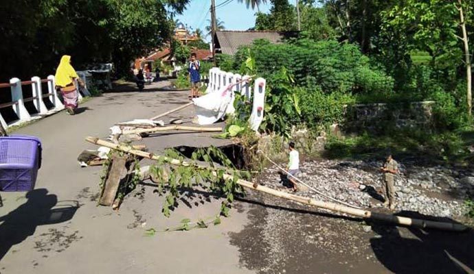 Warga dan Babinsa segera memasang tanda peringatan sederhana dari bambu, kayu, agar para pelintas jembatan dapat waspada dan menghindarkan korban jiwa.