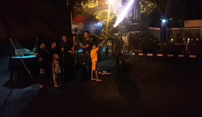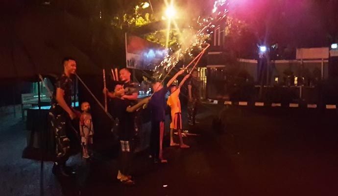 Kasdim 0713 Brebes, Mayor Infanteri Edwin Samma Baratiku, mengajak anak-anak asrama Kodim Brebes merayakan Idul Fitri 1441 Hijriyah dengan pesta kembang api di halaman Makodim Brebes. Sabtu malam (23/5/2020).