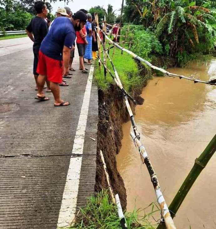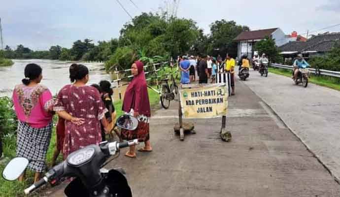 Hal serupa juga tampak di pinggir jalan wilayah Desa Kalibuntu, Kecamatan Pabedilan, Kabupaten Cirebon, Jawa Barat. Di titik ini, masyarakat setempat memasang pagar pengamanan darurat yang terbuat dari bambu.