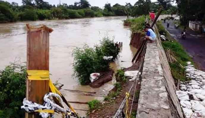 Tampak salah satu tanggul kritis Cisanggarung yang terletak di Desa Pekauman, Kecamatan Losari, dimana kondisinya kini makin mengkhawatirkan sehingga rawan jebol. Jumat (26/2/2021).