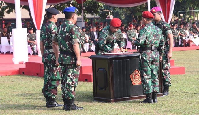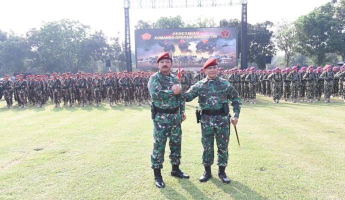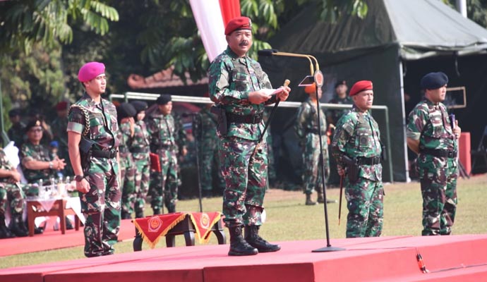 Panglima TNI, Marsekal TNI Hadi Tjahjanto, S.I.P. bertindak selaku Inspektur Upacara pada peresmian satuan Komando Operasi Khusus Tentara Nasional Indonesia (Koopssus TNI), bertempat di lapangan Satpamwal Denma Mabes TNI, Cilangkap, Jakarta Timur, Selasa (30/7/2019).
