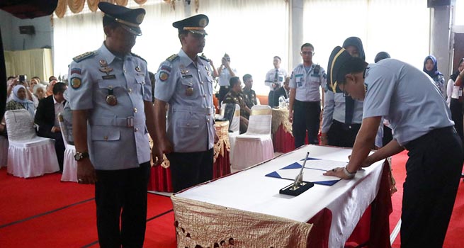 Lembaga Pemasyarakatan (Lapas) Kelas IIA Paledang, berganti pucuk pimpinan. Serah terima jabatan dan acara pisah sambut berlangsung di Aula Graha Rahardjo Lapas Kelas IIA Paledang, Jalan Paledang, Kecamatan Bogor Tengah, Kota Bogor, Rabu (19/09/2018).