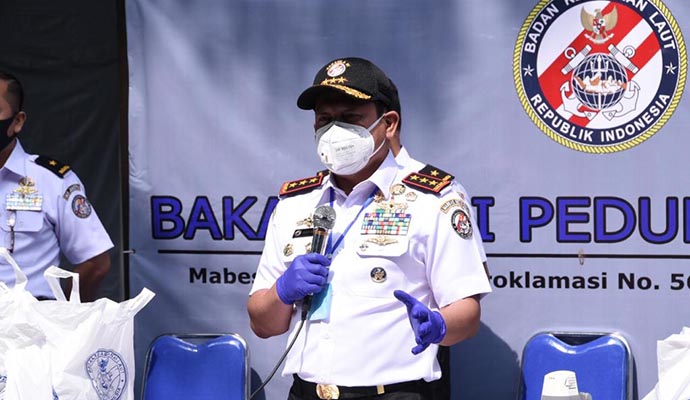 “Kami turut prihatin dan dapat merasakan dampak dari pandemi virus ini bagi kehidupan keluarga yang kurang mampu, khususnya pekerja harian. Oleh karena itu kami mengadakan bakti sosial Bakamla RI Peduli Covid-19 sebagai bentuk kepedulian kepada warga masyarakat sekitar,” jelas Kabakamla.