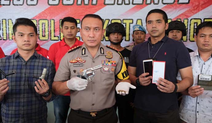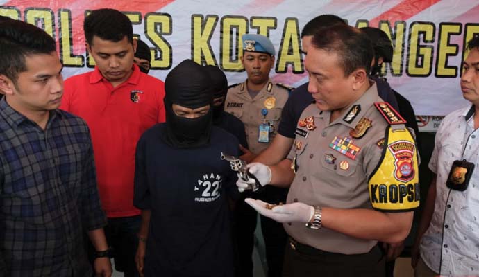 Unit 1 Jatanras Sat Reskrim Polres Kota Tangerang Polda Banten membekuk komplotan perampok yang kerap menggunakan senjata api jenis revolver dalam aksinya. Dari ungkap kasus itu, polisi meringkus 3 orang yang berinisial HSN (39), IRV (20), dan HY (24). Dua tersangka yakni HSN dan IRV terpaksa ditembak petugas di bagian kaki karena berusaha melawan dan melarikan diri.