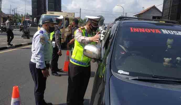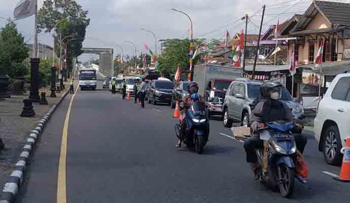 INILAHONLINE.COM, MAGELANG — Aparat gabungan dari Polres Magelang, TNI, Dinas Perhubungan dan Satpol PP Kabupaten Magelang, melakukan penyekatan PPKM arus lalu lintas di perbatasan Jateng – DI Yogyakarta (Tugu Ireng, Salam, Kabupaten Magelang). Penyekatan dilakukan selama tiga hari (Jumat, Sabtu dan Minggu), sebagai langkah antisipasi menekan angka Covid – 19.