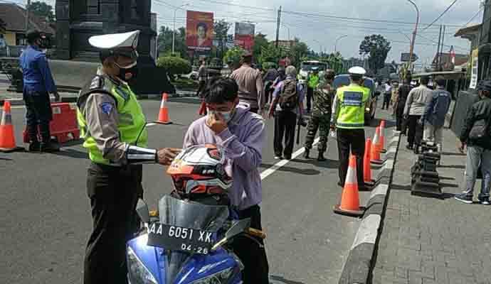 Kapolres Magelang, AKBP Mochammad Sajarod Zakun SH SIK kepada wartawan, Jumat (27/08-2021) mengatakan, meski saat ini angka penularan Covid – 19 mulai landai, namun pada hari libur tim gabungan dari Polres, TNI, Dishub dan Satpol PP, melakukan penyekatan PPKM di perbatasan, tepatnya Tugu Ireng di Kecamatan Salam, Kabupaten Magelang.