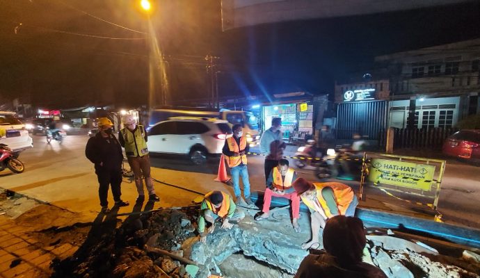 INILAHONLINE.COM, KOTA BOGOR – Untuk mengatasi perbaikan kebocoran pipa HDPE 10″ yang terjadi di Jalan raya Pulo Empang Kotta Bogor, Tim non-revenue water (NRW) dan Trandis Perumda Tirta Pakuan Kota Bogor terus berusaha maksimal mempercepat perbaikan pipa air bertekanan tinggi yang bocor di Jl Pulo Empang pada Rabu malam (6/7/2021).