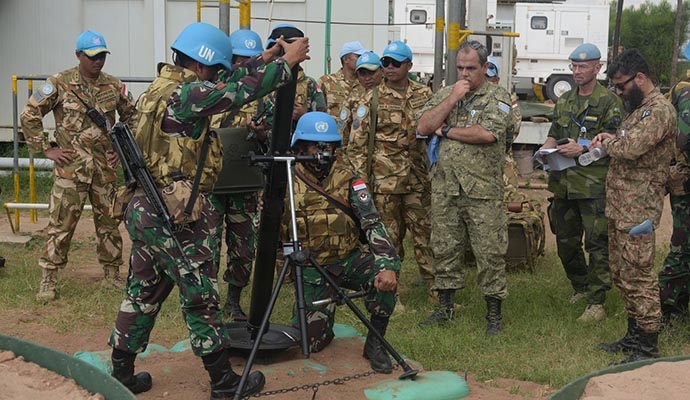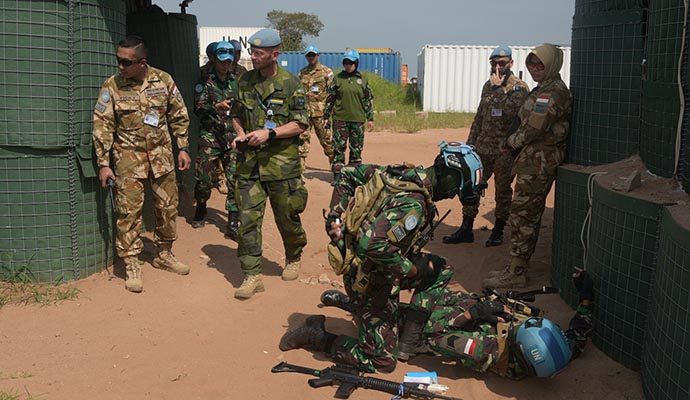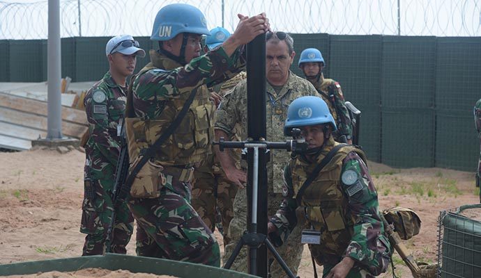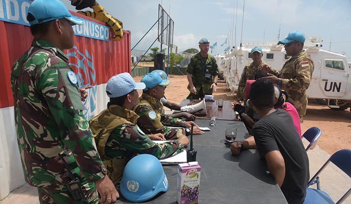 Tim OEI (Operational Effectivieness Inspection) dari Markas Pusat MONUSCO di Goma menginspeksi Satuan Tugas (Satgas) TNI Kontingen Garuda (Konga) XXXIX-B Rapid Deployable Battalion (RDB) Mission de IOrganisation des Nations Unies pour La Stabilisation en République Démocratique du Congo (Monusco) di Soekarno Camp Kalemie, Propinsi Tanganyika, Republik Demokratik Kongo, Kamis (13/2/2020).