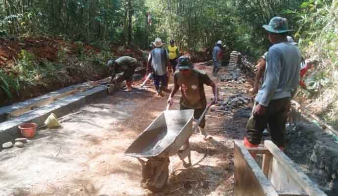 “Sebagai penunjang jalan, di pra TMMD saat ini sedang dikerjakan pembuatan saluran drainase ruas ketiga sepanjang 208 meter lebar 90 centimeter, dengan progres 40 persen,” terangnya, Senin (23/8/2021).
