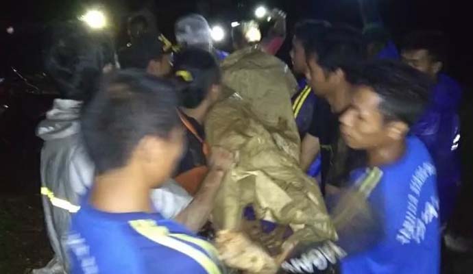 Proses pencarian korban tertimbun longsor dimulai pukul 21.00 WIB menunggu hujan reda sehingga tidak membahayakan penolong. Lokasi korban akhirnya dapat ditemukan dan sekitar pukul 23.30 WIB dan berhasil dievakuasi Sabtu dini hari (23/3) pukul 00.30 WIB dalam keadaan meninggal dunia tertimbun material longsor.