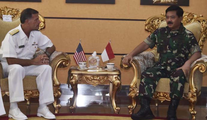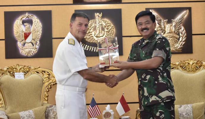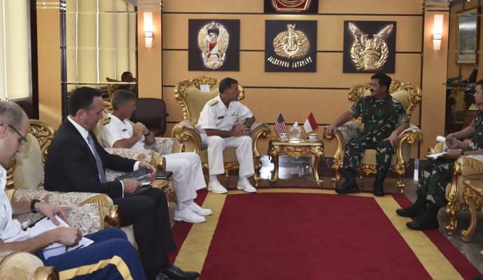 Demikian disampaikan Panglima TNI Marsekal TNI Hadi Tjahjanto, S.I.P. pada saat menerima kunjungan kehormatan Panglima Armada Pasifik Amerika Serikat Admiral John C. Aquilino berserta rombongan di Mabes TNI, Cilangkap, Jakarta Timur, Senin (1/7/2019).