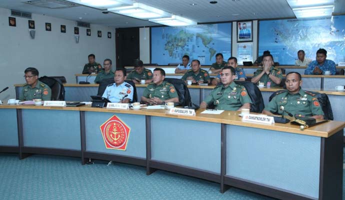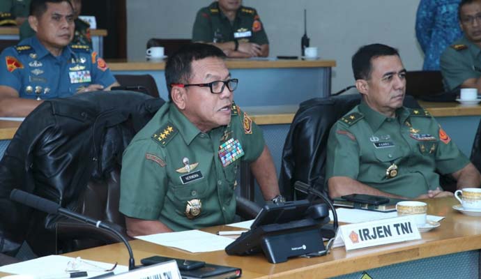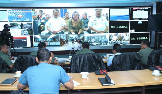 Inspektur Jenderal (Irjen) TNI Letjen TNI Muhammad Herindra., M.A., M.Sc mewakili Panglima TNI Marsekal TNI Hadi Tjahjanto, S.I.P. ikut melakukan uji coba jaringan optik bawah laut Palapa Ring Paket Tengah di Kepulauan Sangihe, Sulawesi Utara, melalui video conference di ruang Pusat Komando dan Pengendalian Operasi Tentara Nasional Indonesia (Puskodalops TNI), Mabes TNI, Cilangkap, Jakarta Timur, Jumat (18/1/2019).
