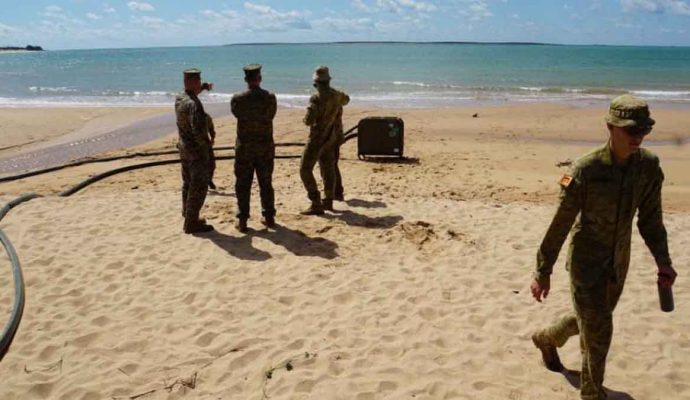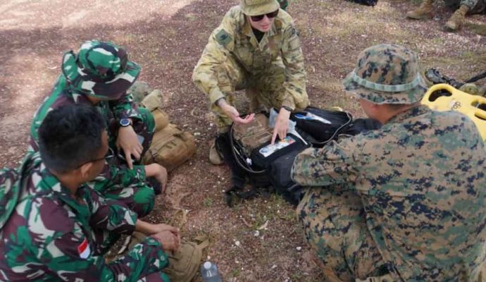 Di tempat latihan yang berbeda, beberapa prajurit TNI berkolaborasi dengan tentara ADF dan Marinir AS mendemonstrasikan kemampuan mereka mengubah air laut menjadi air tawar agar layak dikonsumsi dengan menggunakan teknologi water purification atau alat penyulingan air.(Badarudin)