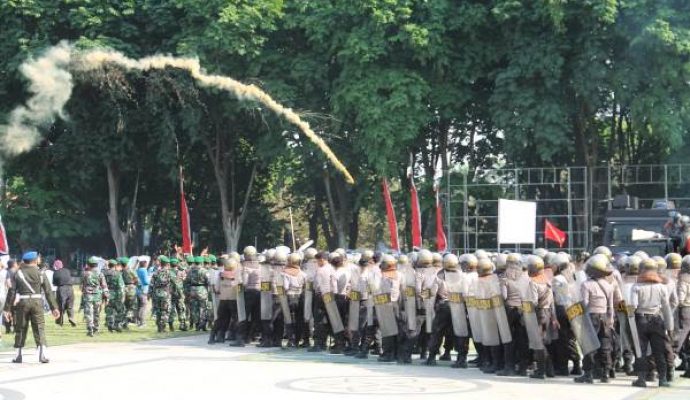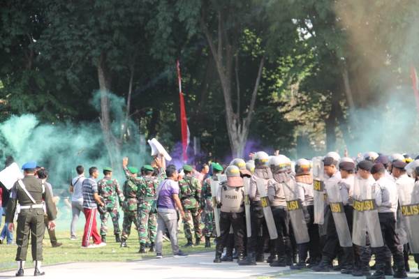 Sebanyak 350 personel gabungan dari TNI Kodim 0813 Bojonegoro, Polres Bojonegoro, Subdenpom V/2-1 Bojonegoro dan Brimob Subden C Polda Jawa Timur, menggelar latihan bersama simulasi Pengendalian Massa (Dalmas) dalam rangka antisipasi perkembangan situasi kamtibmas jelang pelantikan Presiden dan Wakil Presiden Republik Indonesia yang direncanakan dilaksanakan tanggal 20 Oktober 2019 mendatang.