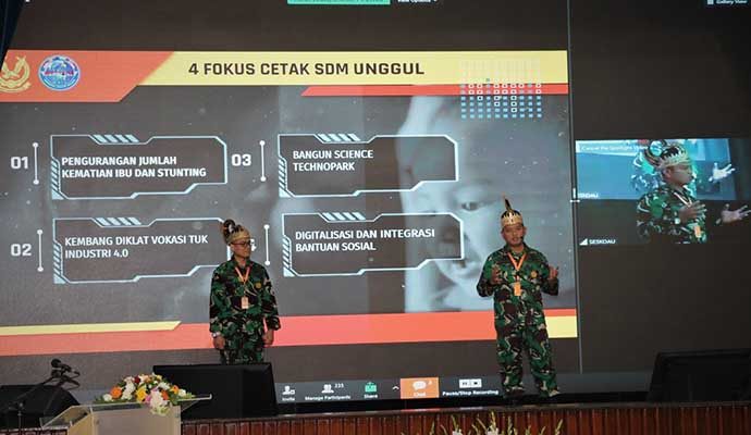 Kegiatan yang dimaksud antara lain ceramah pembekalan PKB Juang oleh Presiden RI Ir. Joko Widodo, Panglima TNI Marsekal TNI Hadi Tjahjanto, S.I.P., dan Kapolri Jenderal Pol Drs. Idham Aziz, M.Si., dengan Panelis Rektor Universitas Padjajaran Prof. Dr. Rina Indiastuti, S.E., M.SIE., menyampaikan materi Pembangunan SDM Unggul Menuju Indonesia Maju dan Pakar Politik, Dr. Susaningtyas Nefo Handayani menyampaikan materi Optimalisasi Integrasi TNI-Polri Mendukung Pembangunan SDM dan Kesejahteraan Masyarakat dengan Moderator Antik Bintari, S.IP., M.T.