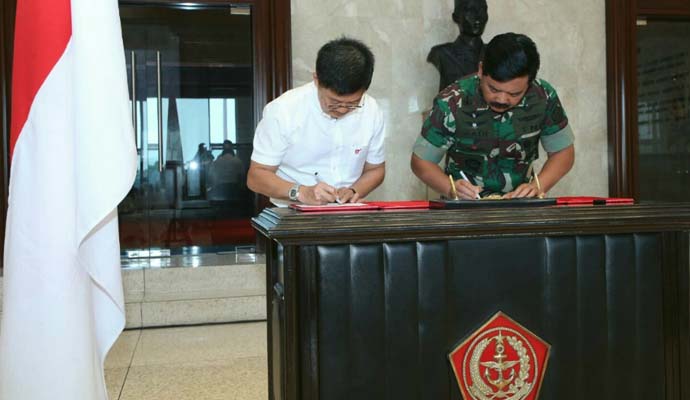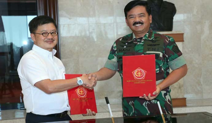 Tentara Nasional Indonesia (TNI) menerima hibah keramik sebanyak 35.000 m² dari PT Arwana Citramulia Tbk., yang diserahkan secara langsung oleh Direktur Utama PT Arwana Citramulia Tbk., Tandean Rustandy kepada Panglima TNI, Marsekal TNI Hadi Tjahjanto S.I.P., di Gedung Soedirman Mabes TNI, Cilangkap, Jakarta Timur, Jumat (15/3/2019).