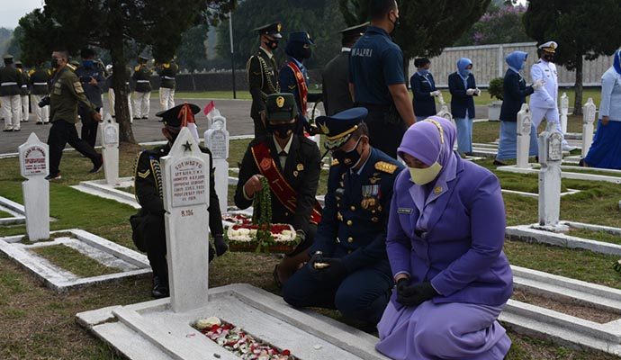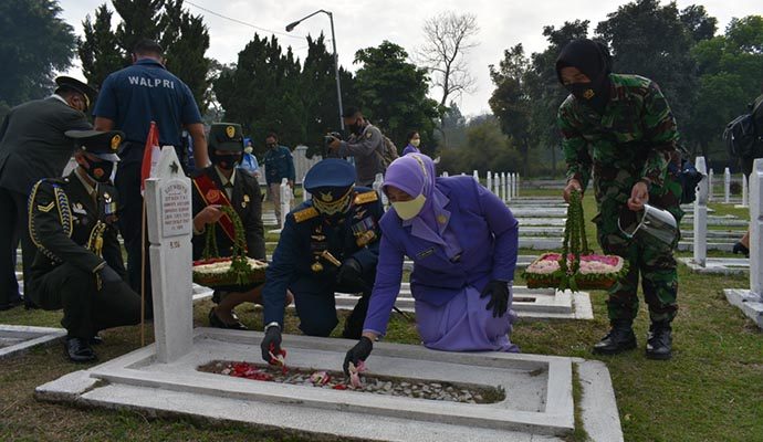 Dalam rangka menyambut peringatan HUT ke-75 TNI Tahun 2020, Prajurit TNI jajaran Garnisun Tetap (Gartap) II/Bandung melaksanakan upacara Ziarah Nasional, bertempat di Taman Makam Pahlawan (TMP) Cikutra, Bandung, Jawa Barat, Jumat (2/10/2020). Bertindak selaku inspektur upacara Komandan Sekolah Komando (Dansesko) TNI Marsekal Madya TNI Dedy Permadi, S.E., MMDS.