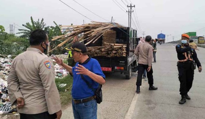 INILAHONLINE.COM, BREBES — Petugas dari Dinas Lingkungan Hidup dan Pengelolaan Sampah (DLHPS) Kabupaten Brebes bersama unsur terkait melakukan penutupan Tempat Pembuangan Sampah (TPS) ilegal di Jalan Raya Pantura Desa Cimohong, Kecamatan Bulakamba. Kamis (19/1/2023).