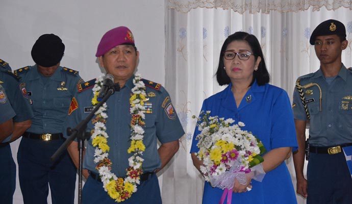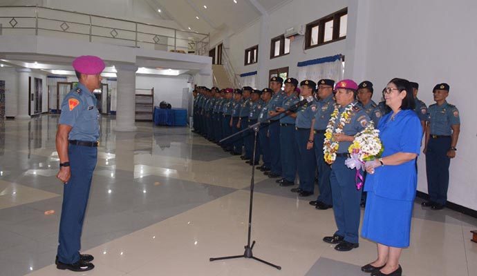 Bertempat di Gedung Yos Sudarso Mako Lantamal VIII telah dilaksanakan kegiatan Tradisi Penyambutan Komandan Lantamal VIII Brigjen TNI (Mar) Donar Philip Rompas beserta Ketua Korcab VIII Daerah Jalasenastri Armada (DJA) II Ibu Dra. Rita Jenny Lysanti., M.PD oleh seluruh personil Lantamal VIII. Senin (2/3/2020).
