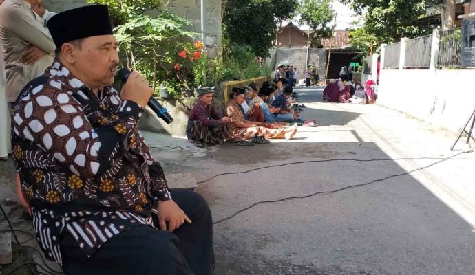 Tradisi syawalan Lebaran Tahun 2026 ini, digelar di sepanjang jalan kampung sambil duduk lesehan beralaskan tikar, untuk perempuan berada di sisi kiri jalan, sedang laki-laki berada di sisi kanan jalan sepanjang satu kilo meter tersebut.