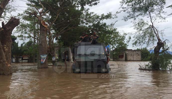 “Kami mengerahkan 6 truk – truk Unimog di sini, jumlah pasukan 1 SST di Kec. Kewadungan, 1 SST di Kec. Pangkur dan 1 SST di daerah Jenangan,“ kata Danyon Armed 12/Kostrad, Mayor Arm Ronald F Siwabessy ketika ditemui di lokasi banjir.