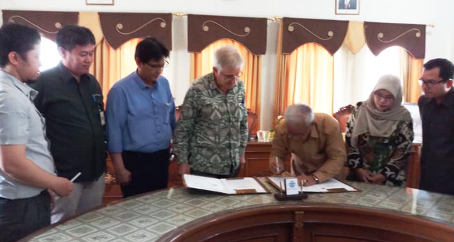INILAHONLINE.COM, JAMBI – UIN Sulthan Thaha Saifuddin (STS) Jambi dan Tanoto Foundation bekerja sama menciptakan calon guru profesional dengan meningkatkan mutu perkuliahan yang lebih menekankan praktik. Termasuk bersinergi dalam meningkatkan mutu madrasah yang menjadi tempat praktik mengajar mahasiswa. Kerja sama tersebut ditandai dengan penandatanganan oleh Rektor UIN STS Jambi, Dr Hadri Hasan MA dengan Direktur Program Pelita Pendidikan Tanoto Foundation, Stuart Weston di Jambi, Senin (13/8/2018).