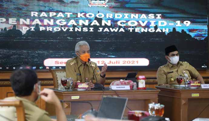 “Sekarang hanya 19 Kabupaten/Kota yang masuk kategori zona merah. Yakni Klaten, Kota Semarang, Purworejo, Kendal, Batang, Kabupaten Semarang, Banjarnegara, Temanggung, Wonosobo, Brebes, Pati, Rembang, Kota Pekalongan, Sukoharjo, Kebumen, Kota Tegal, Pemalang, Karanganyar dan Sragen,” kata Gubernur Jawa Tengah, Ganjar Pranowo usai rapat evaluasi penanganan Covid-19 di kantornya, Senin (12/7/2021).