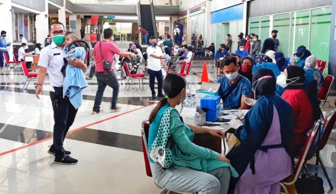 Vaksinasi awalnya dilaksanakan di 6 sentra besar. Kemudian untuk mencapai percepatan, vaksinasi diselenggarakan berbasis wilayah di 68 kelurahan. Percepatan penyelenggaraan vaksinasi mendapatkan bantuan dari TNI dan POLRI, dan menerapkan strategi mobilisasi yang melibatkan banyak unsur. Seperti pembentukan Direktur Vaksin yang dijabat oleh para kepala Organisasi Perangkat daerah (OPD0 dengan membuka sentra-sentra vaksinasi.
